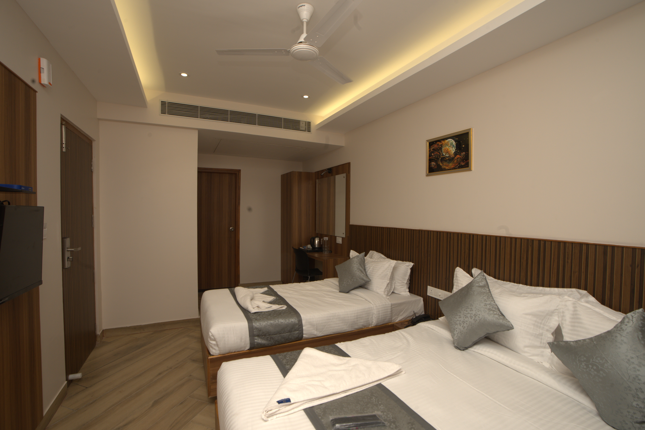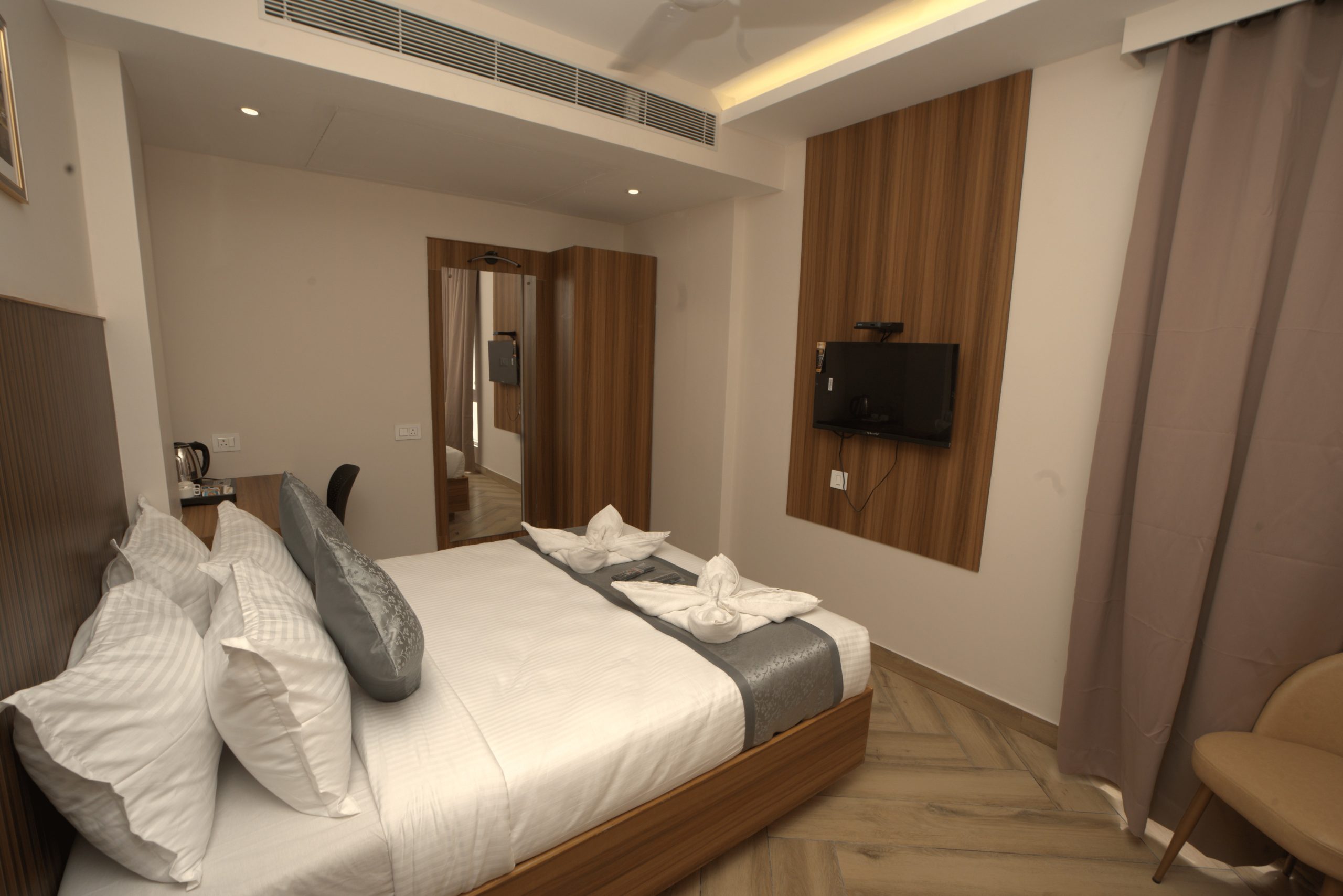 Our rooms are designed for comfort, functionality, and a restful stay. Each space is clean, well-furnished, and thoughtfully planned to suit business travellers, families, and leisure guests. With comfortable bedding, modern essentials, and a calm interior setting, every room offers a relaxing place to unwind after a day in Chennai.